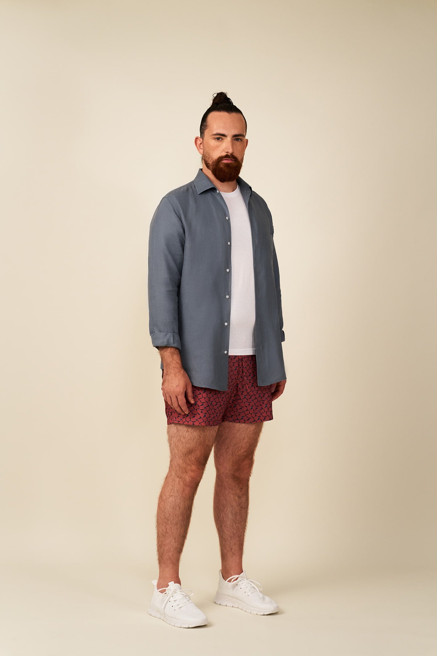 Taglio rilassato, lino con carattere, resistente, con una texture che migliora col tempo. Non un banale lino leggero e piatto, ma un tessuto con carattere, che ti accompagna per tutta la giornata.